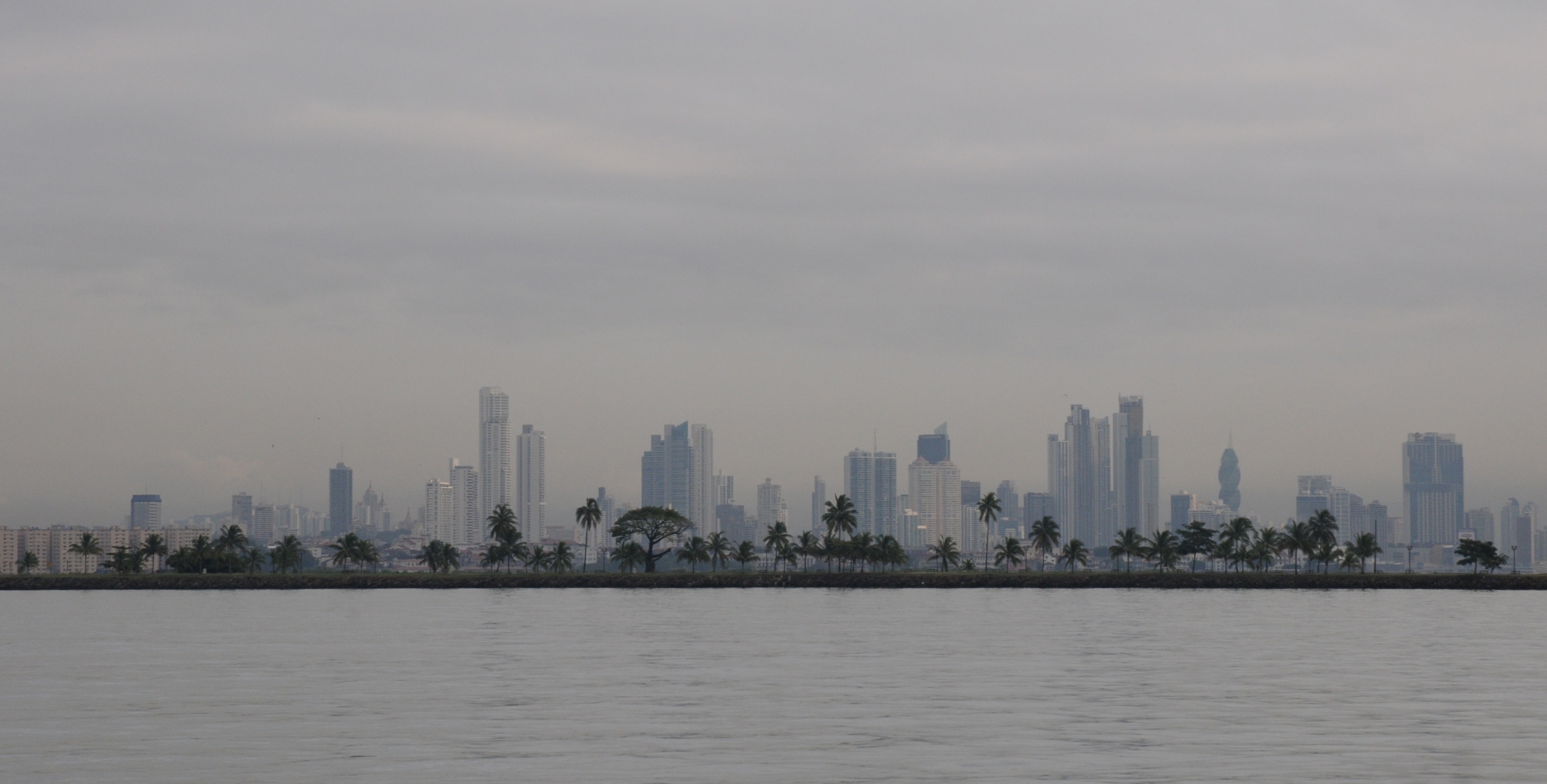 Panama City skyline seen from the Amador Causeway. Latin America's business, shopping and entertainment center. From here, the central Pacific beaches are only an hour away.