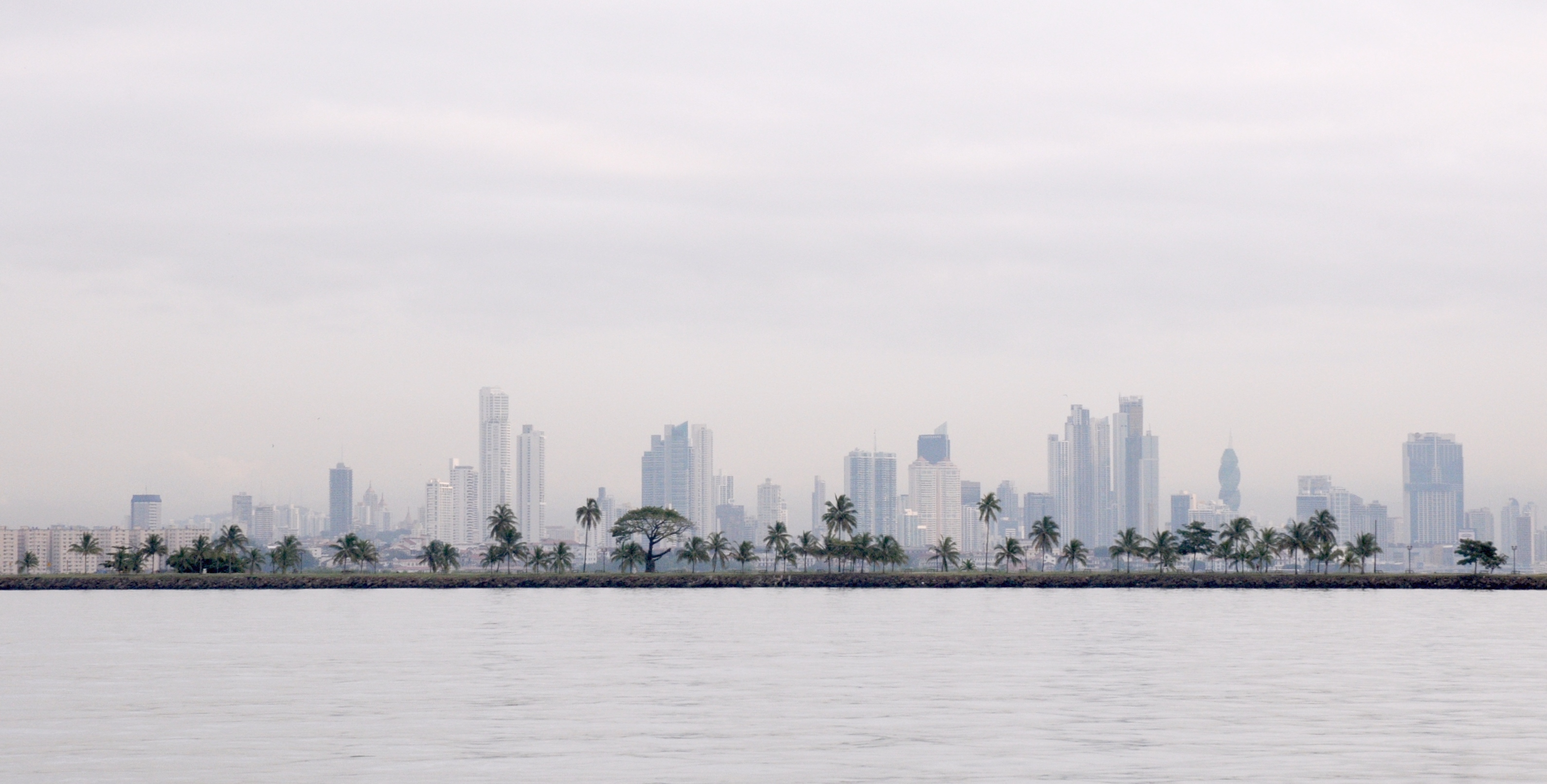 Panama City skyline seen from the Amador Causeway. Latin America's business, shopping and entertainment center. From here, the central Pacific beaches are only an hour away.