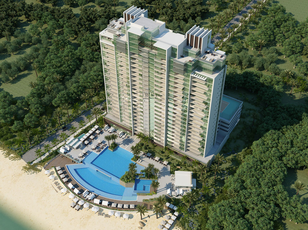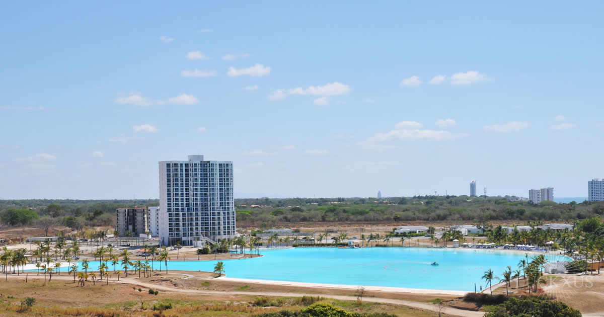 Playa Blanca Resort is one of approx. 30 projects along Panama's Centrall Pacific coast. This is a view across the largest saltwater lagoon in Central America and the Caribbean to the Towncenter building.